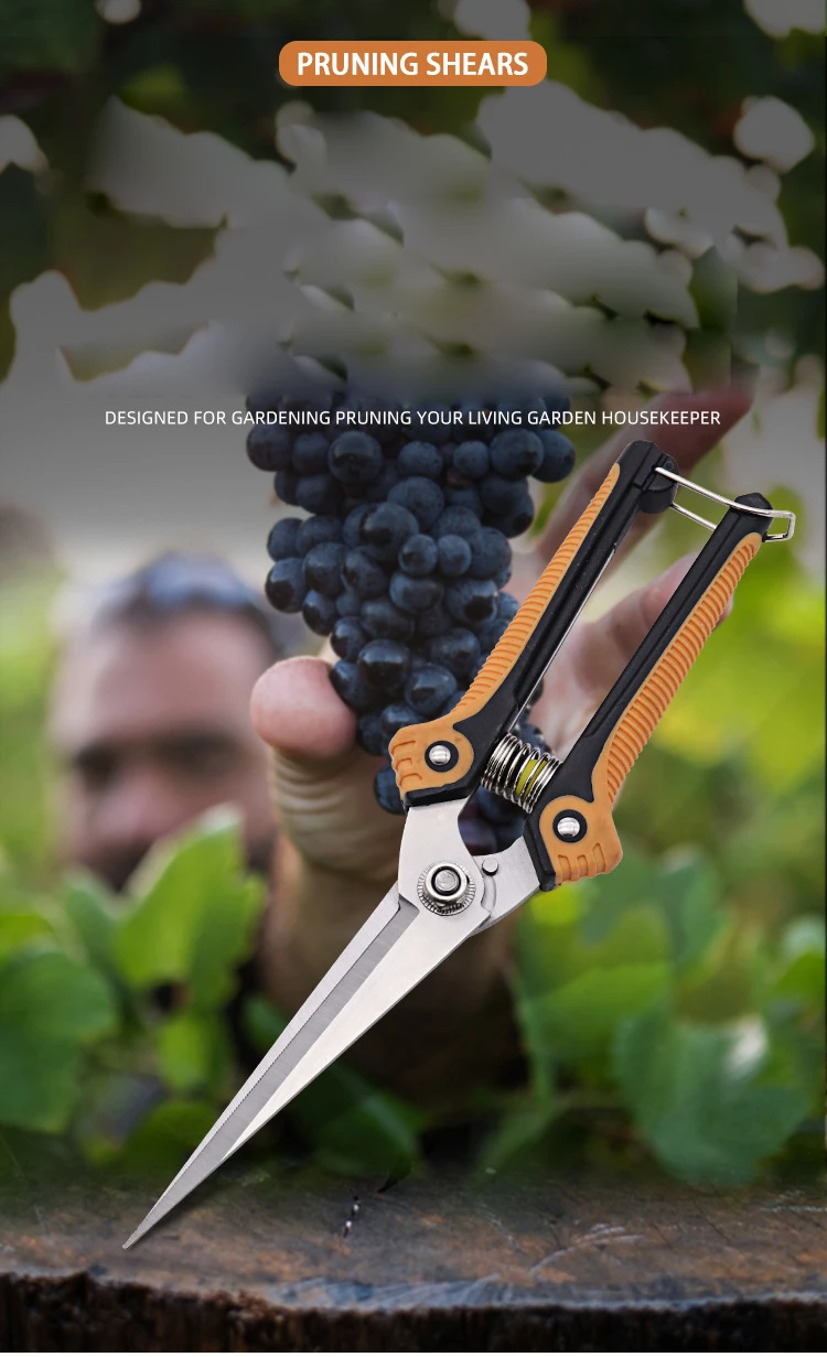 Pruning Scissors Professional Garden Shears Straight Stainless Steel Blades Sharp Gardening Hand Pruner For Garden Fruits Plants