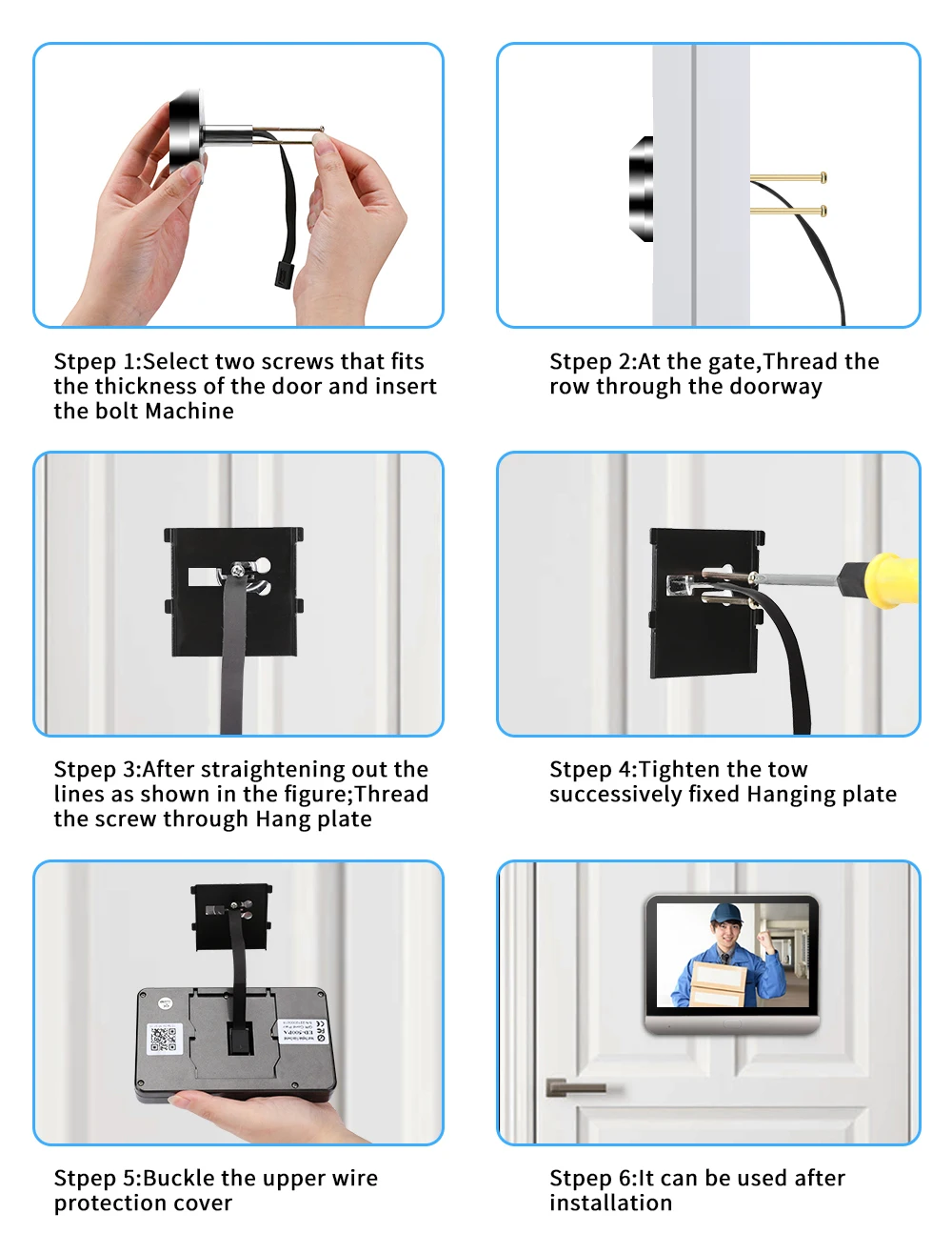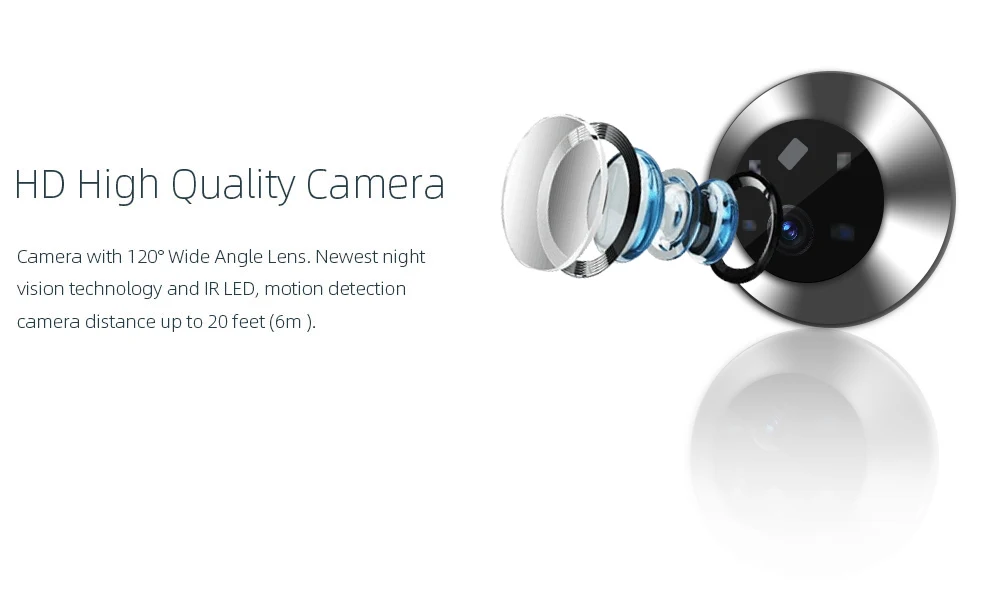 3, Dispozitivul este potrivit pentru: 40-120mm grosimea ușii, vizorul este de 16-50mm, iar lungimea de instalare a cablului este de 11cm.